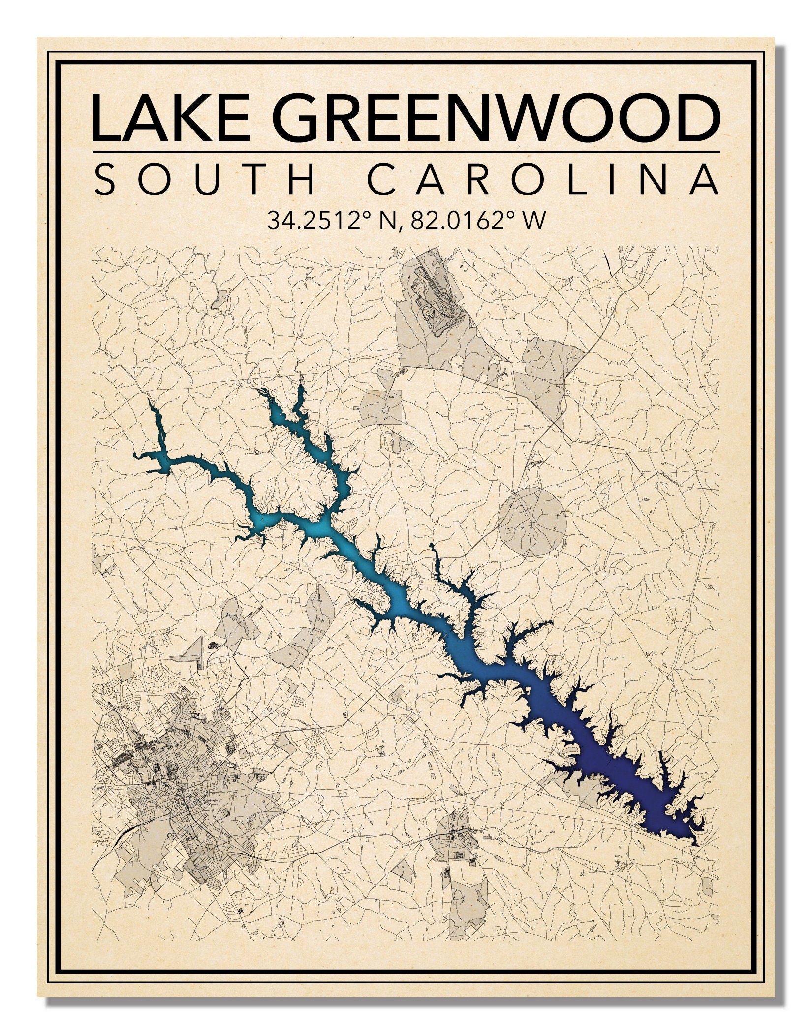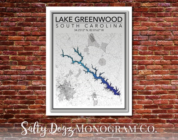 Wall Art Map Print of Lake Greenwood, South Carolina Etsy