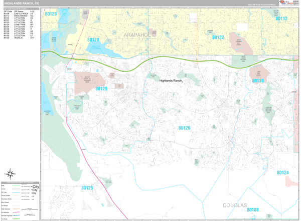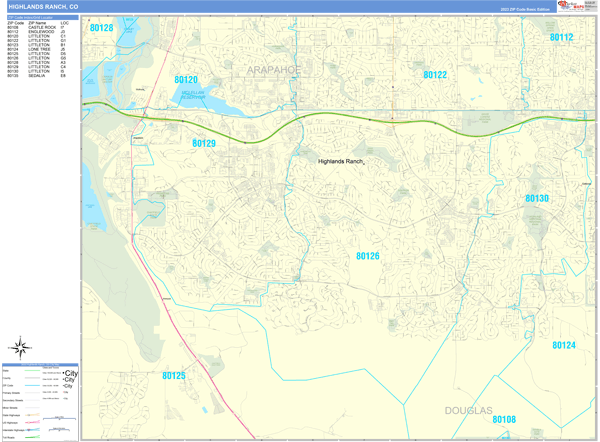 Highlands Ranch Colorado Zip Code Wall Map (Basic Style) by