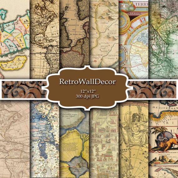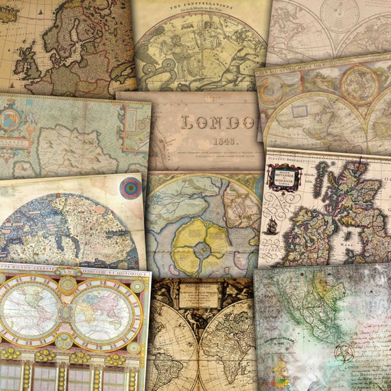 Vintage Maps Digital Paper, Antique Maps of Europe, America and